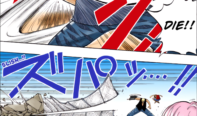 Feat from Chapter 5 : "Luffy blitzes bullets"