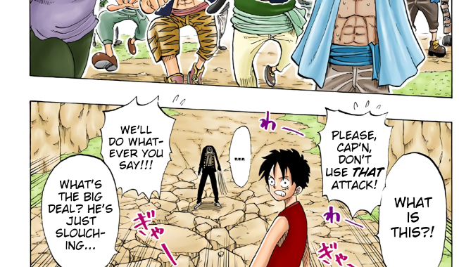 Vol 5 For Whom the Bell Tolls doesn't really have much that is feat related, it covers the rest of the fight between Luffy and Kuro well Zoro finishes of amped Buchi and rescues Usopp , the end of the syrup island arc and the start of the Baratie arc , so instead of covering some calcs, this article will just be going over some aspects of general power scaling related content in this Volumes