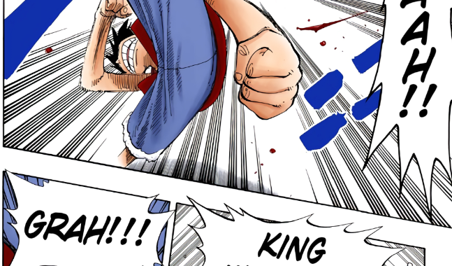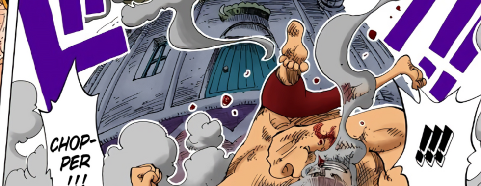 Wapol also gets combo attack by luffy and Sanji with an attack that is Sanji's leg strength plus luffys stretching strength plus how ever much force luffys spinning adds to it that results in Wapol spiting out a lot of blood and deciding to go into a transformation