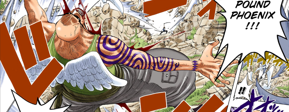 Zoro's 36 pound phoenix isn't able to cut through the "iron cloud " but his 108 Pound phoenix can which likely means that the 3 sword version of the phoenix attack ether compounds on each other i.e. all 3 wind blades hit the same same spot increasing the attack potency or the attack its self inherently has increased attack potency and as we seen Zoro do the steel cutting with one sword it probably the ladder ether way making the attack 3x higher in attack potency and as pre-steel cutting Zoro is equal to Luffy and that it isn't a base increase he still should scale to Luffy putting new high bound of the pre-steel cutting attack potency 3x lower than the 26.9179 PetaPascals multi-city block level of the sword cutting feat or 8.9726 PetaPascals multi-city block level for Zoro and Luffy strongest named attacks and as Luffys base attacks are 3x lower than that putting them at 2.9908 PetaPascals city block level over his previous 511 TeraPascals (0.511 PetaPascals ) city block level base attack strength